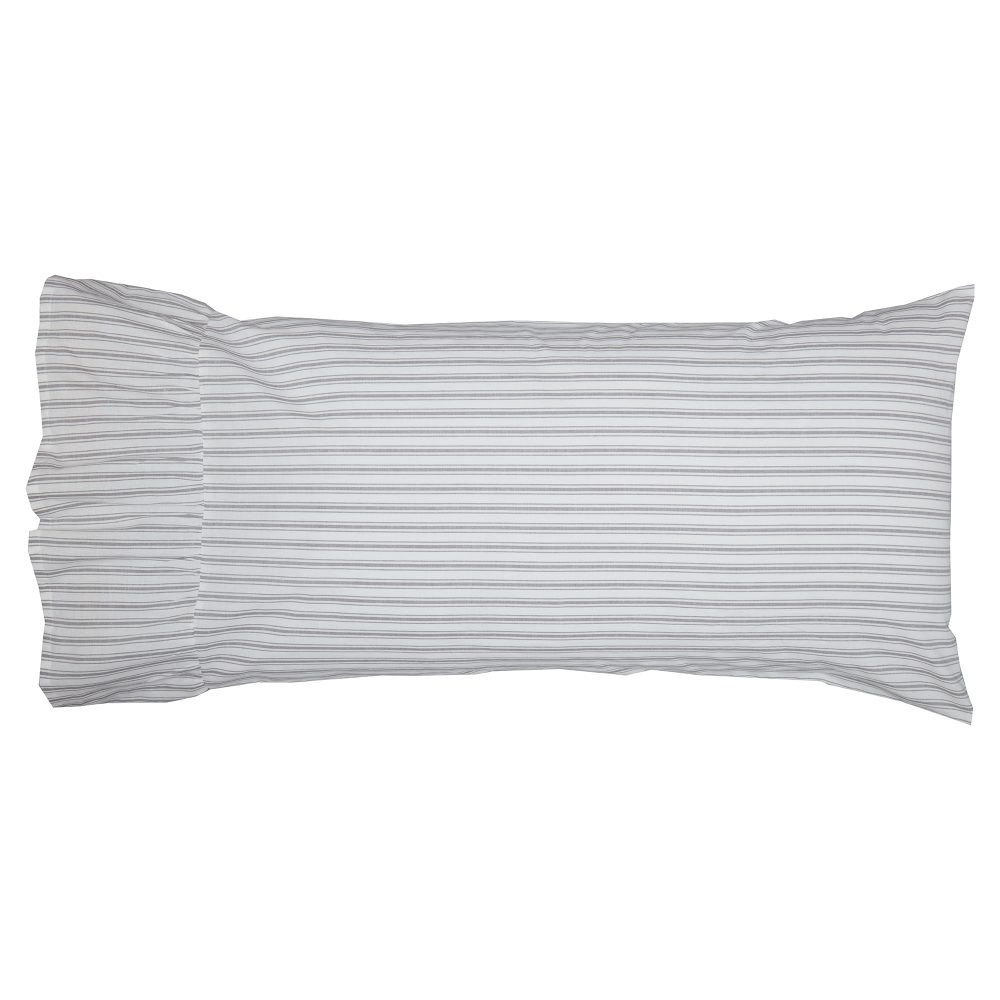 Nothing says farmhouse chic quite so strongly as the perfectly tailored stripes of our Timeless Ticking Collection. In this classic design, one main stripe is flanked by thinner stripes on either side, feathering out the look, creating a soft, visually pleasing pattern. Dove Gray combines with restful, creamy white in a classic striped design that is calming and familiar, charming and comfortable. Nonstop farmhouse style with a feminine flair is easily achieved when you bring home this fresh and casually elegant ticking fabric, enhanced and softened with generous ruffles. The King Shams add a lovely layer of softness and flirty flounce to your vintage farmhouse or upscale cottage bedroom. A gently-gathered, generous 8 ruffle surrounds the open edge of the pillow cover. The classic striped fabric and feminine ruffles add no end of cozy, luxurious charm to your updated bedding ensemble.