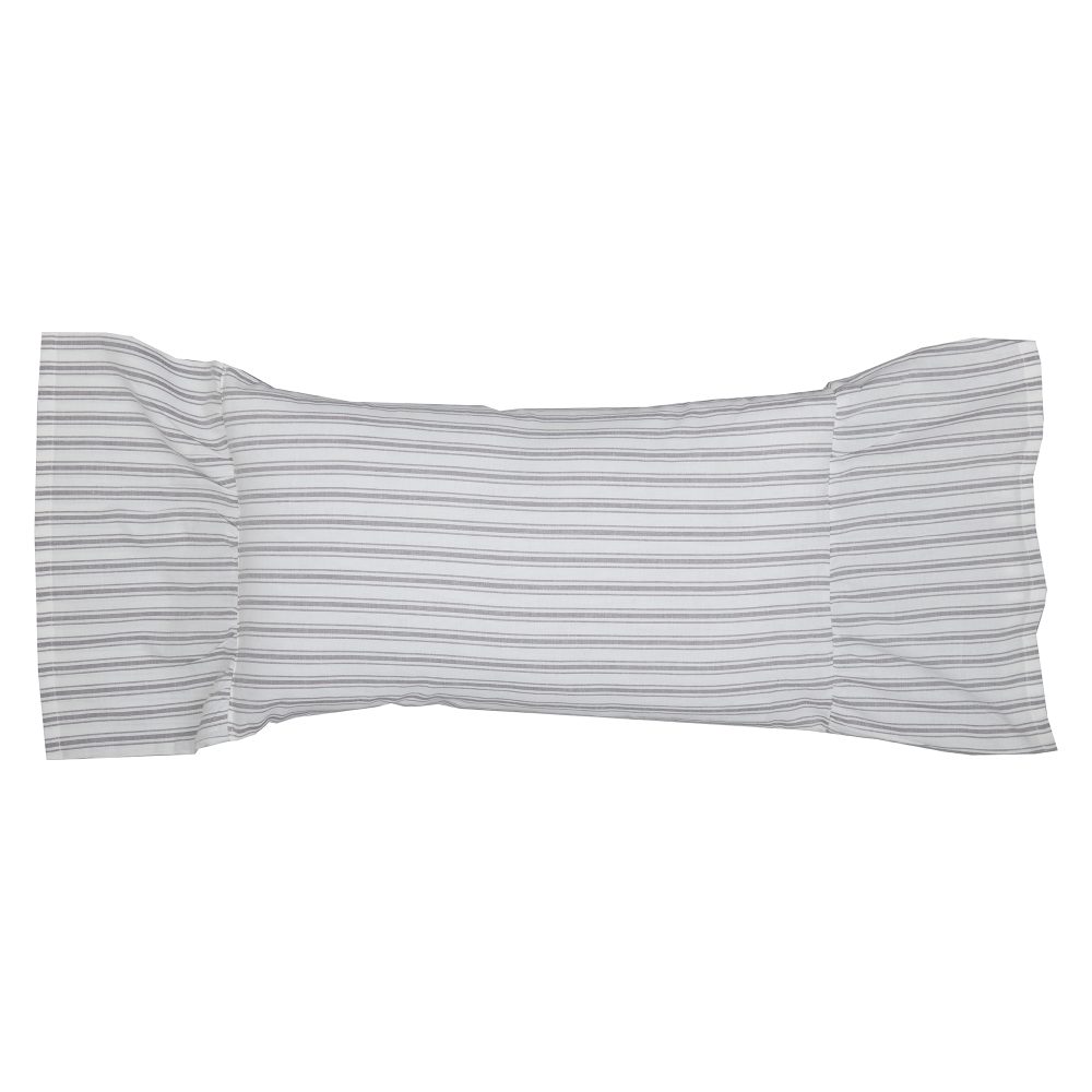 Nothing says farmhouse chic quite so well as the perfectly tailored stripes of our Timeless Ticking fabric. In this classic pattern, one stripe is flanked by thinner stripes on either side, feathering out the look, to create a delicate and pleasing fade. Dove Gray combines with restful, creamy white in a familiar repeating design that is visually calming and relaxed. Softness abounds with this playful, flirty Ruffled Pillow cover, adding no end of stylish charm to your vintage farmhouse or upscale cottage. The casually elegant fabric brings comfortable, old-fashioned style to the pillow and generous ruffles create lovely softness and feminine appeal. Layers of fabric are gently gathered and sewn to the pillow, fashioning the ruffles that dress up both sides of the pillow cover. Display with other Timeless Ticking fabrics, repeating the design throughout your home for your own curated, signature style. Pairs well with other collections too, especially Farmhouse Ticking Gray.
