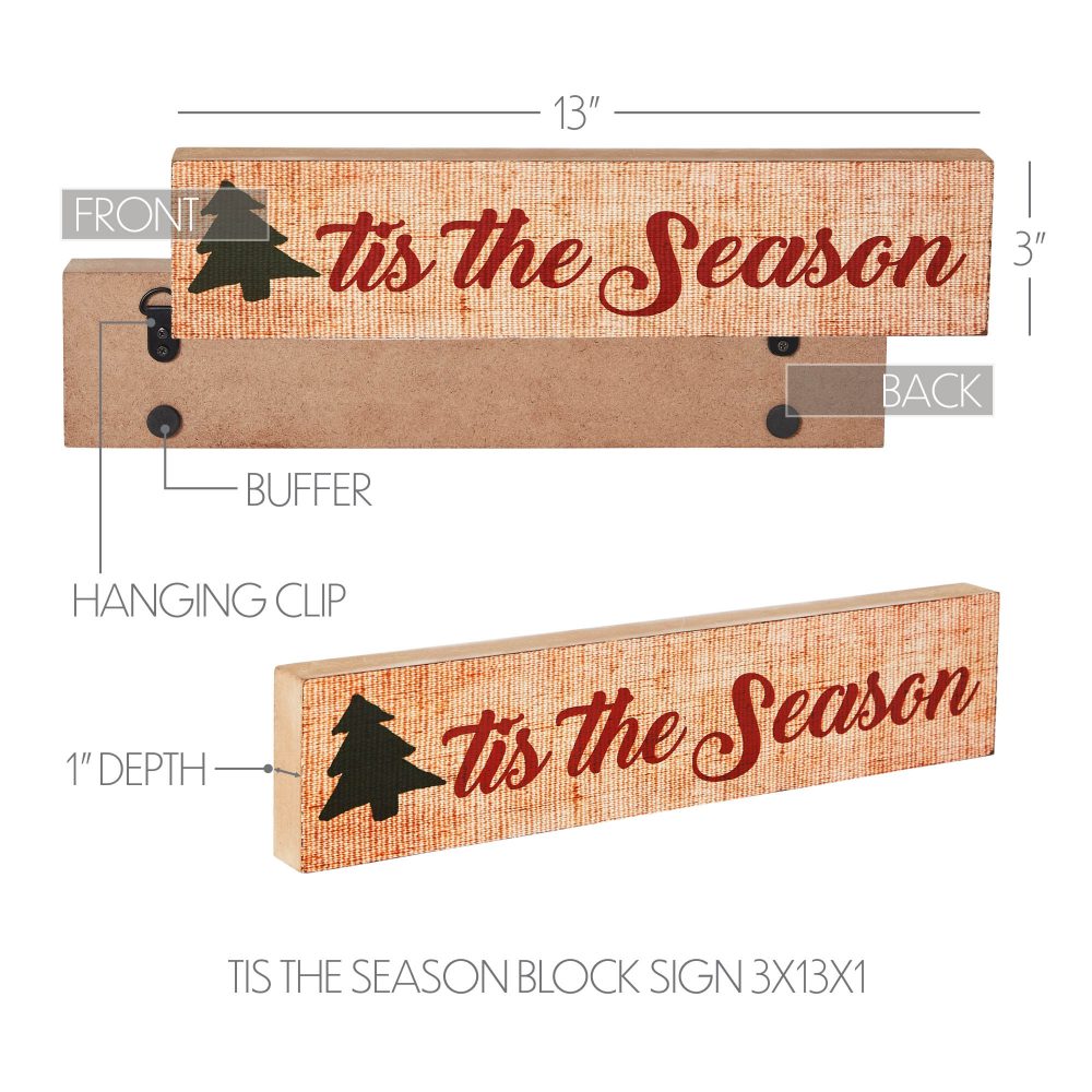 - Add a touch of festive charm to your tabletop decor with this delightful block sign, measuring 3×13 inches, featuring the classic holiday message “Tis the Season” perfect for spreading Christmas cheer throughout your home.