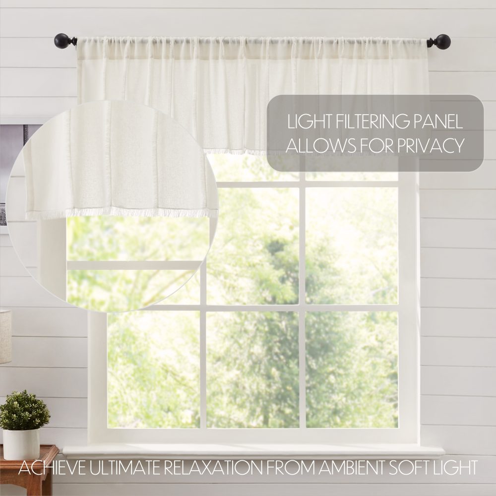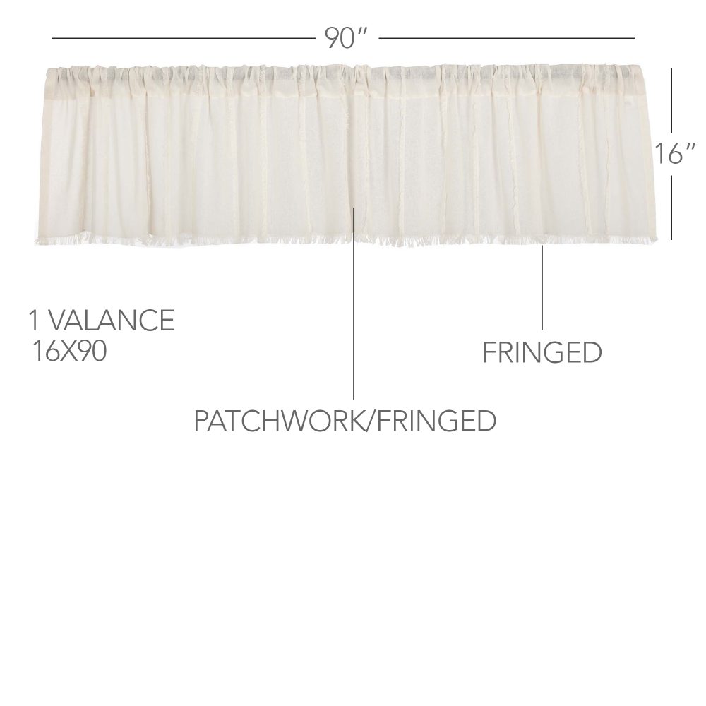 The Tobacco Cloth Antique Patchwork Valance 16x90 brings a luxuriously upscale farmhouse look to your home or retreat. Beautifully showcasing a lightweight antique tobacco cloth that drapes your window in sheer elegance with its soft and simple texture. Finished with reverse seam detailing and a fringed edge for added texture and charm.