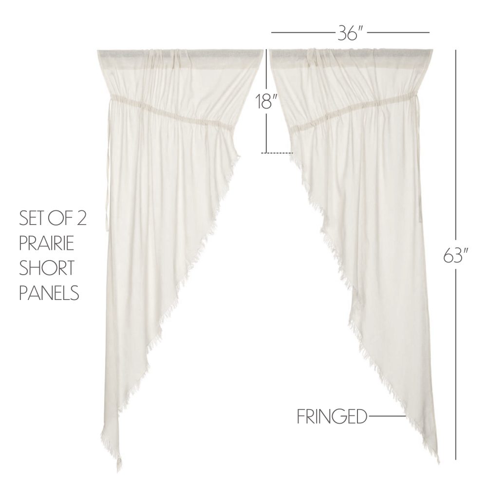 - FARMHOUSE PRAIRIE PANELS: Includes two 63 by 36 by 18 inch prairie-style panels with adjustable drawstring ties to modify the look of your curtain set. Prairie curtains are a classic country style featuring long, angled drapes to frame your window while leaving a triangular space open for additional natural light.