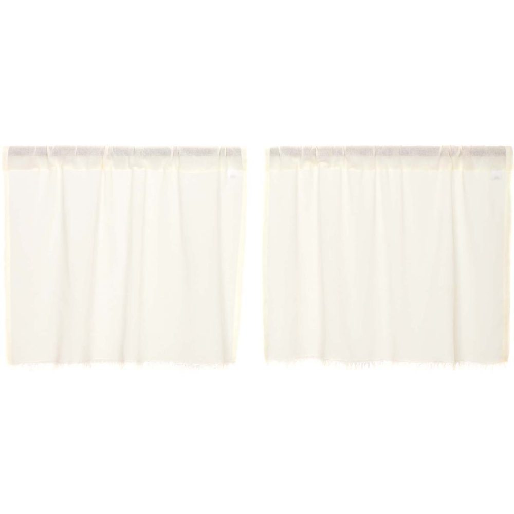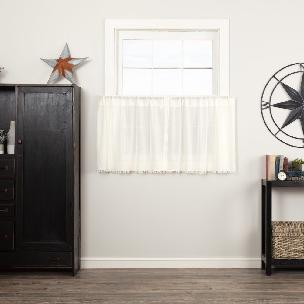 Create the perfectly charming country window of your dreams with these 24x36 inch tier-style curtains. Featuring sheer, soft white tobacco cloth, the Tobacco Cloth Antique White Tier Fringed Set provides just the right balance of privacy and sunshine. Pair with a matching valance or prairie swag for a fully decorated look or alone for a simple pop of texture and character. Also known as cafe or bistro curtains, these are a particularly good fit for decorating farmhouse kitchens, laundry rooms, and small bathroom windows.