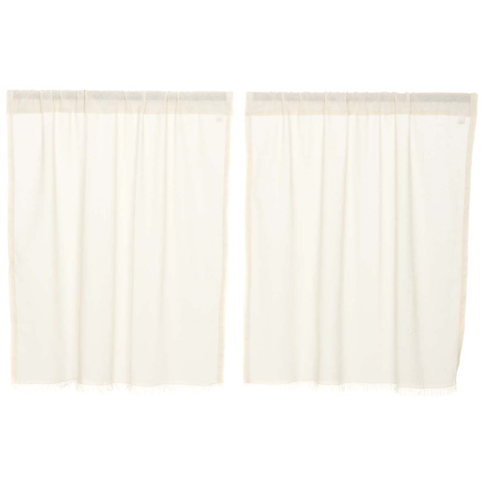 Create the perfectly charming country window of your dreams with these 36 x 36 inch tier-style curtains. Featuring sheer, soft white tobacco cloth, the Tobacco Cloth Antique White Tier Fringed Set provides just the right balance of privacy and sunshine. Pair with a matching valance or prairie swag for a fully decorated look or alone for a simple pop of texture and character. Also known as cafe or bistro curtains, these are a particularly good fit for decorating farmhouse kitchens, laundry rooms, and small bathroom windows.