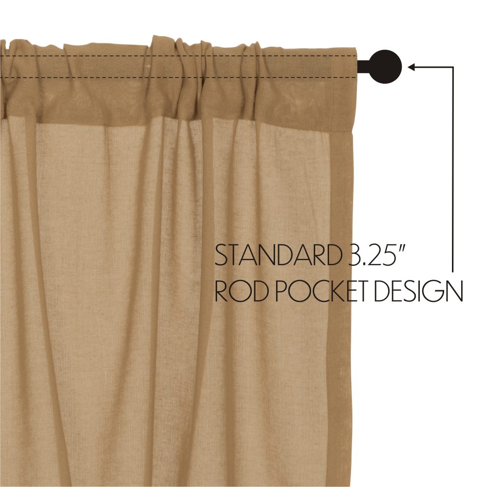 - FARMHOUSE PANEL: Includes one 96 by 40 inch panel crafted with sheer khaki cotton fabric with a frayed bottom edging and a 3.25 rod pocket.