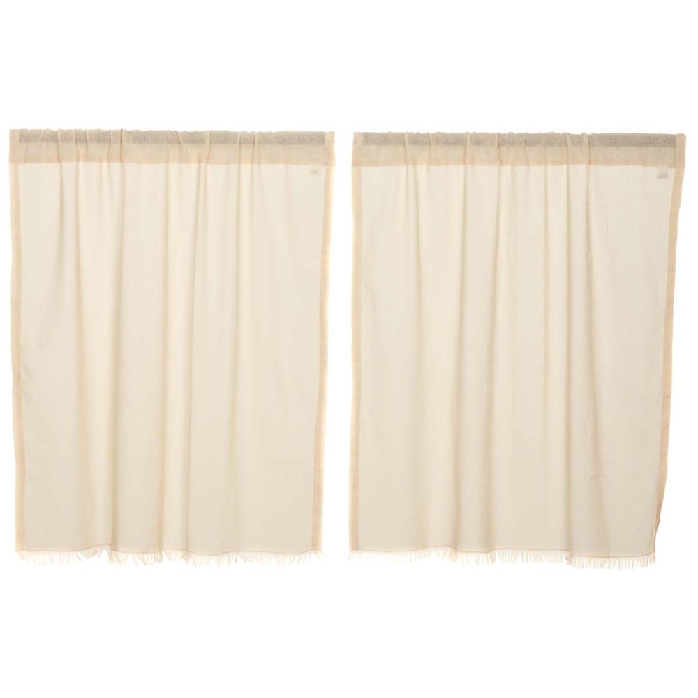 Create the perfectly charming country window of your dreams with these 36 x 36 inch tier-style curtains. Featuring sheer, creamy ivory tobacco cloth, the Tobacco Cloth Natural Tier Fringed Set provides just the right balance of privacy and sunshine. Pair with a matching valance or prairie swag for a fully decorated look or alone for a simple pop of texture and character. Also known as cafe or bistro curtains, these are a particularly good fit for decorating farmhouse kitchens, laundry rooms, and small bathroom windows.