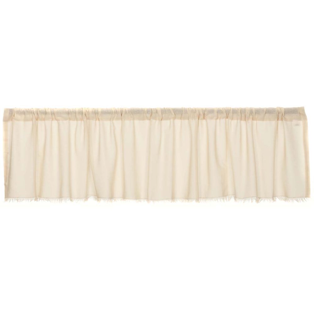 The Tobacco Cloth Natural Valance Fringed 16x90 brings a luxuriously upscale farmhouse look to your home or retreat. A lightweight creme shade tobacco cloth drapes your window in sheer elegance with its soft and simple texture.