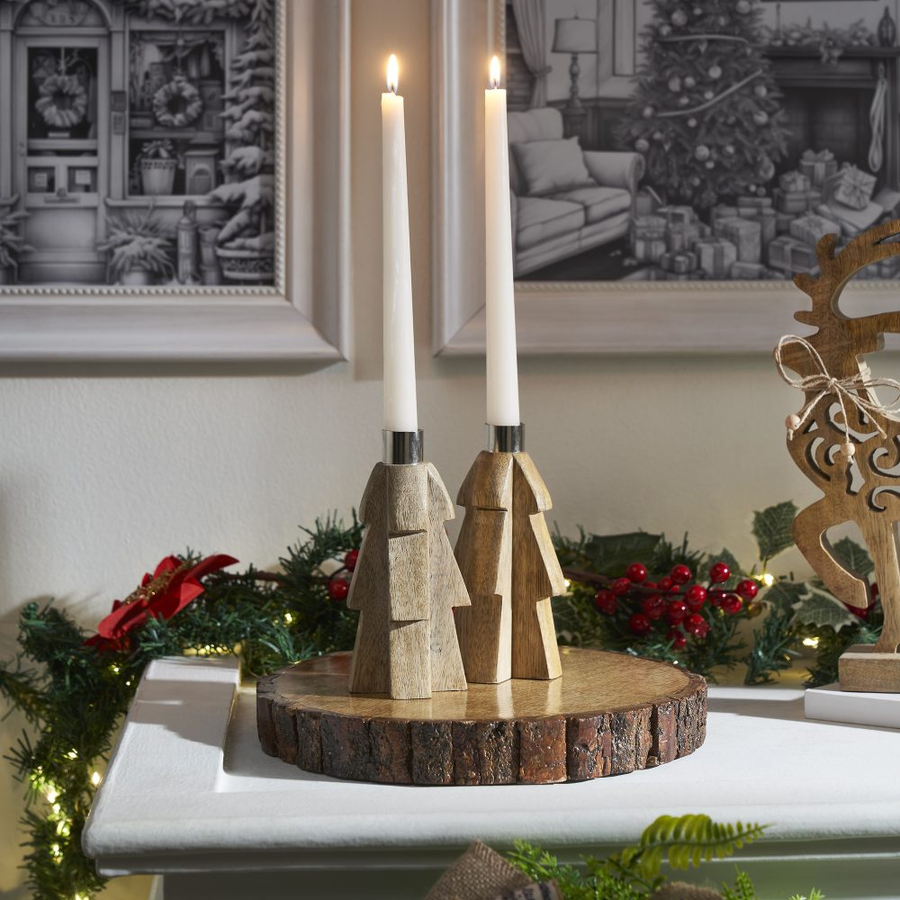 - Charming Tree Design: Features a wood tree candle holder with a sleek silver metal holder at the top to securely hold taper candles, adding a rustic, holiday charm to your decor.