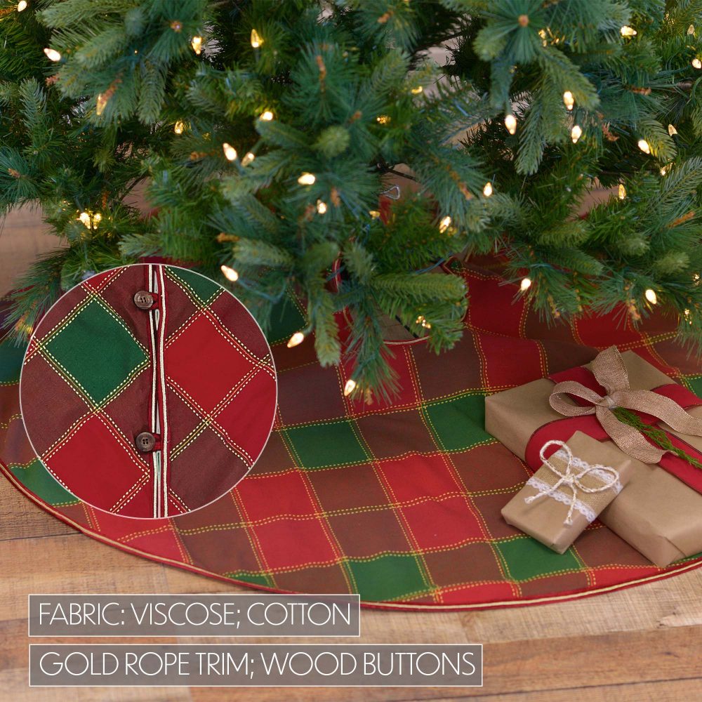 The shiny VHC Brands Tristan Tree Skirt is the perfect holiday tree decor item for that rustic and classic feel. You'll enjoy the luxurious feel featuring a modern gold rope trimming. Don't worry. There are three button closures and loops to make sure your tree collar stays snugly in place this holiday season. Bring cheer and joy to your tree display this year with the Tristan holiday decor collection.