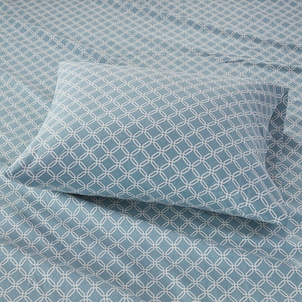 True North by Sleep Philosophy Cozy Cotton Flannel Printed Sheet Set in Blue Geo, Twin XL TN20-0246