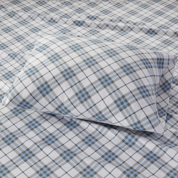 True North by Sleep Philosophy Cozy Cotton Flannel Printed Sheet Set in Blue Plaid, Cal King TN20-0085