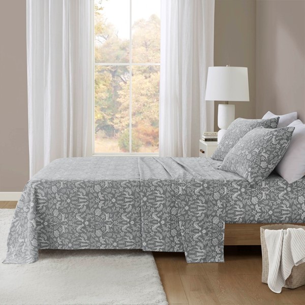 True North by Sleep Philosophy Cozy Cotton Flannel Printed Sheet Set in Sage Winter Fauna, Queen TN20-0604