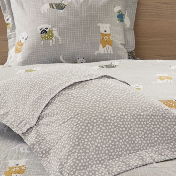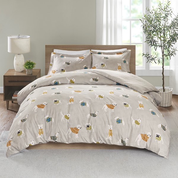 The True North by Sleep Philosophy Cozy Flannel Duvet Cover Set offers a cozy and charming touch to your bedroom. This 100% cotton cozy flannel duvet cover and matching shams showcases an adorable various dogs on grey ground as they hug you to bed. Machine washable for easy care, this cotton flannel duvet cover provides you with an incredibly warm and comfortable update to your home. Button closures help secure a comforter insert within the duvet cover and the four internal ties in the corners help prevent it from shifting. A comforter insert is NOT included. This bedding set is also OEKO-TEX certified, meaning it does not contain any harmful substances or chemicals, ensuring quality comfort and wellness.