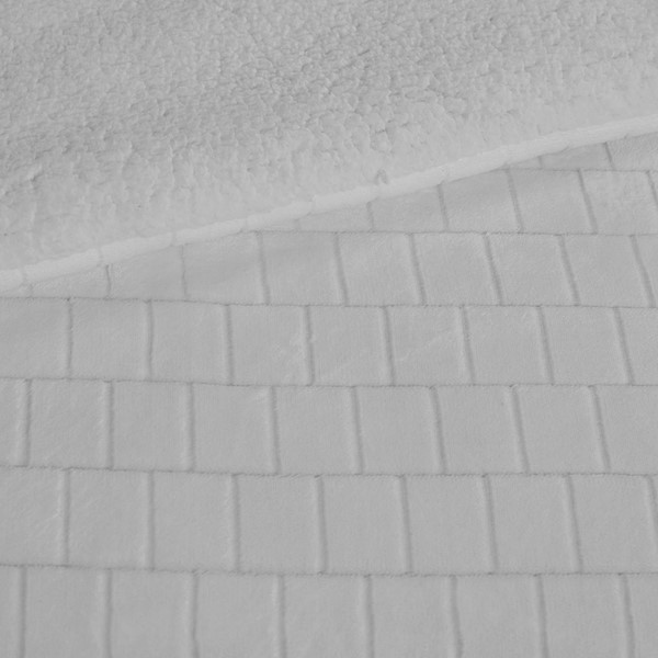 Comforter: Jacquard Velour to Sherpa, 100% polyester; Polyester Fiber filling, Jump Tack stitched with Knife Edge