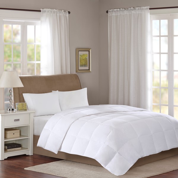 The True North Stain Release 3M Scotchgard 300 Thread Count Cotton Sateen White Down Comforter in level 1 is perfect for all-season use. The comforter is filled with high-quality 600 fill power 80% white down, 20% feather. Did you know that down provides approximately three times the warmth per ounce compared to even the best synthetic alternatives? Down is also breathable and helps to wick away moisture while you sleep. Our 300 thread count, 100% cotton sateen cover features 3M Scotchgard stain release which removes dirt easier in wash. The fabric remains soft and breathable while helping to keep your comforter looking newer longer. The end-to-end sewn-through box quilting ensures that the white down doesn’t shift, so you’ll never have any cold spots on the bed. Four corner loops on the comforter can be tied to help secure it within a duvet cover. This comforter is also OEKO-TEX certified, meaning it does not contain any harmful substances or chemicals, ensuring quality comfort and wellness. Items in the set may come in a rolled or compressed packaging, which will need to be fluffed up or steam ironed before use to remove wrinkles.