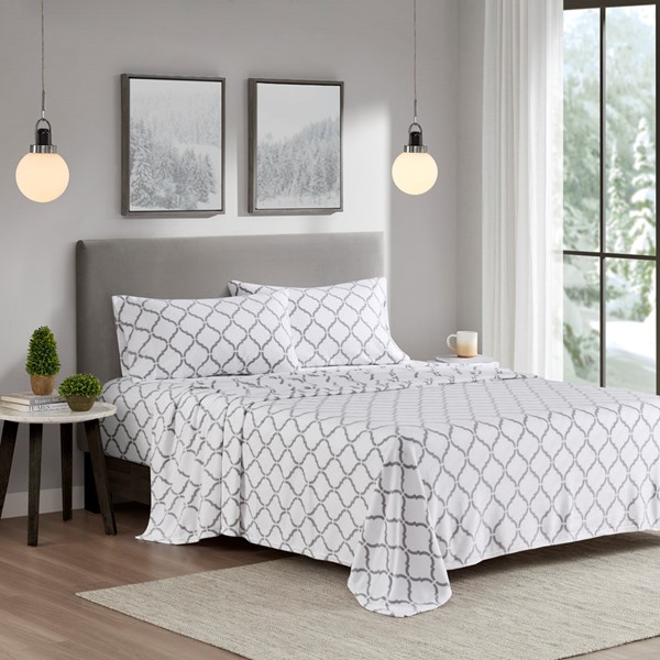 True North by Sleep Philosophy Micro Fleece Sheet Set in Grey Geo, Queen TN20-0530