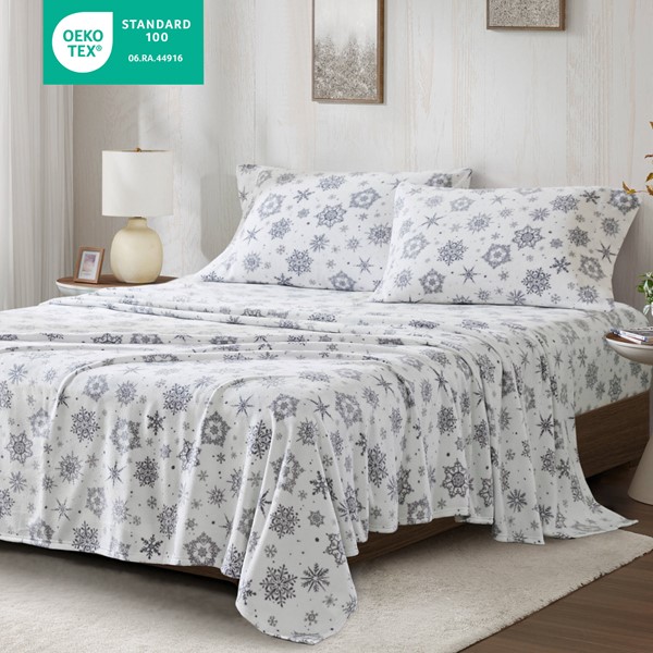 True North by Sleep Philosophy Micro Fleece Sheet Set in Grey Snowflake, Full TN20-0533