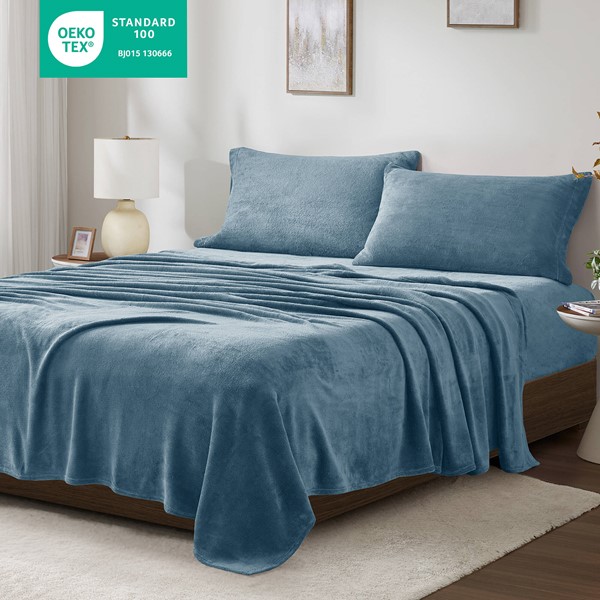 True North by Sleep Philosophy Soloft Plush Micro Plush Sheet Set in Blue, Queen BL20-0455