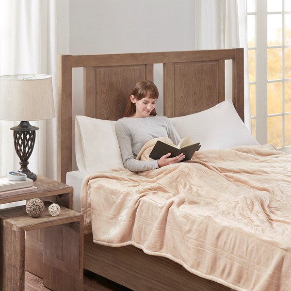True North by Sleep Philosophy Ultra Soft Plush to Berber Heated Blanket in Tan, Queen TN54-0190
