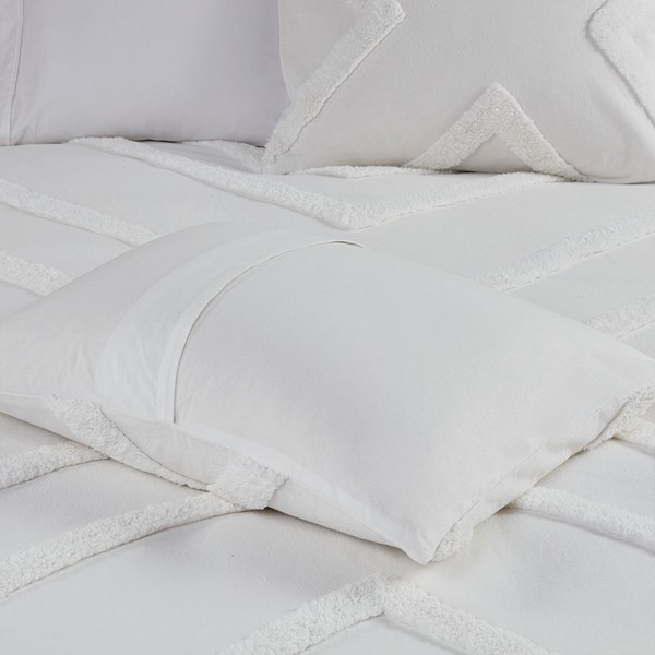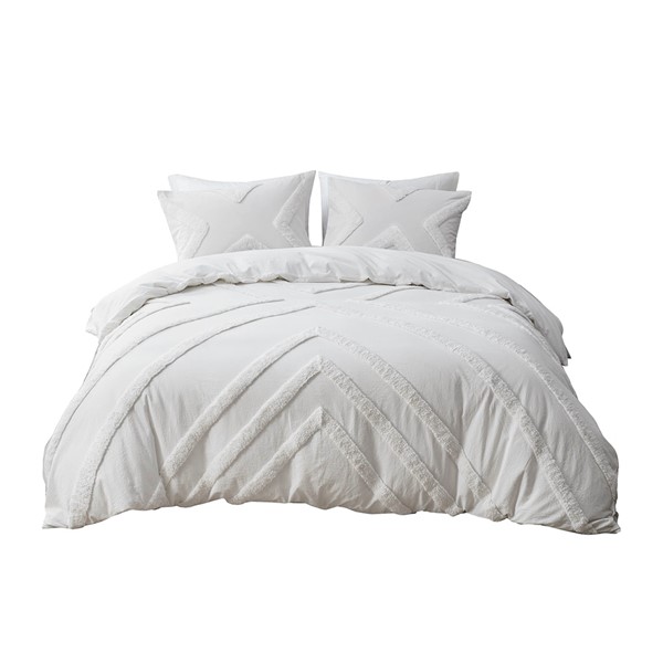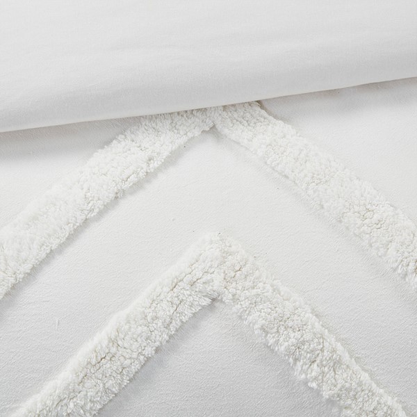 Refresh your bedroom with the bold and modern allure of the Urban Habitat Beck Cotton Chenille Duvet Cover Set. This ivory cotton duvet cover features a large scale chenille geometric design to create an eye-catching look. The 2 coordinating shams (1 in Twin/TwinXL) pair handsomely with the top of the bed to complete the geometric duvet cover set. This bedding set is also OEKO-TEX certified, meaning it does not contain any harmful substances or chemicals to ensure quality comfort. Machine washable for easy care. A button closure at the foot end secures a padded insert within the duvet cover and inside corner ties prevent it from shifting (insert is NOT included).