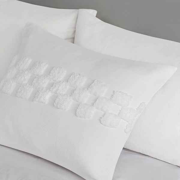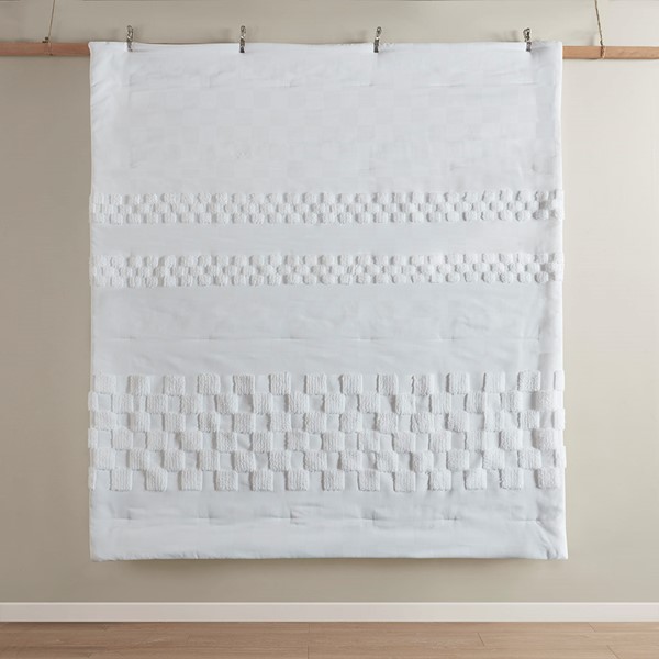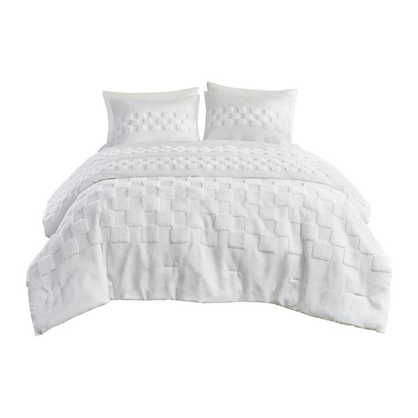 The Bennett comforter set features a unique checkered pattern with clipped chenille for a modern, sophisticated look. This off-white comforter adds a contemporary update to your bedroom, while coordinating shams complete the bedding set. The hypoallergenic polyester comforter filling contains no allergens and is treated to be dustproof. This comforter set is also machine washable for easy care.