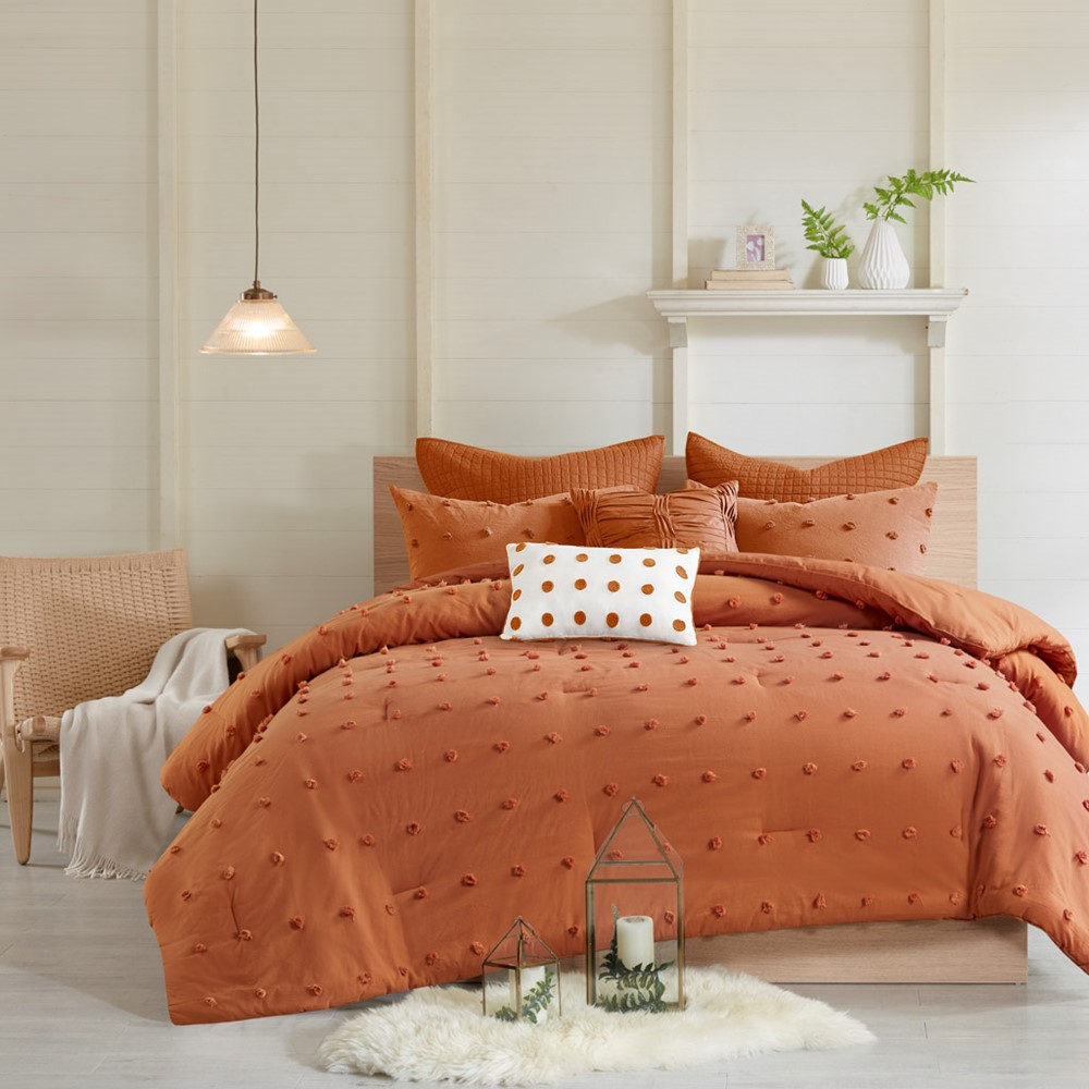 The Urban Habitat Brooklyn Cotton Jacquard Comforter Set features small tufted chenille dots that create a fresh shabby chic look. This comforter set brings a soft and charming update to your bedroom, while matching shams (1 in Twin/TwinXL) and quilted Euro shams (1 in Twin/TwinXL) complement the cotton jacquard comforter set. Two decorative pillows are also included, adding the finishing touches. The hypoallergenic polyester comforter and decorative pillow filling contains no allergens and is treated to be dustproof so you can sleep soundly without any worries. This comforter set is also OEKO-TEX certified and is machine washable for easy care.