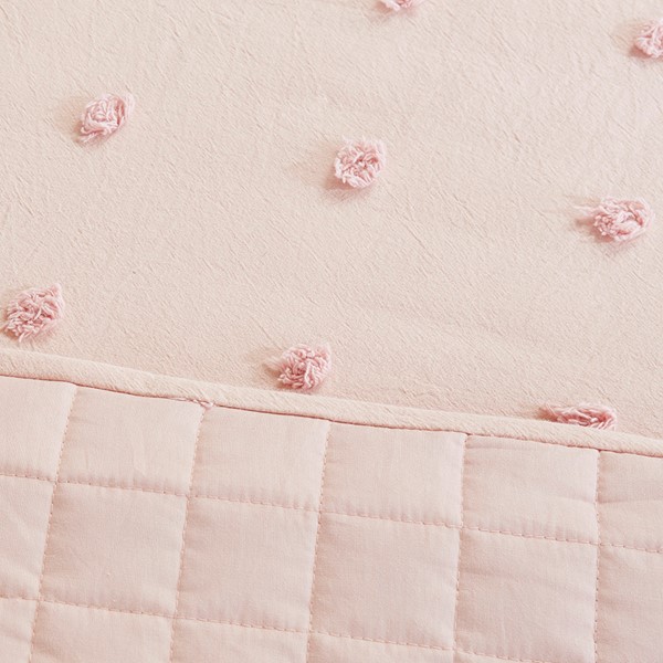 The Urban Habitat Brooklyn Cotton Jacquard Daybed Set brings a soft and charming update to your guest bedroom. This pink cotton daybed features small tufted chenille dots that create a fresh shabby chic look. The 3 matching shams and a solid bed skirt complement the cotton jacquard daybed set. This bedding set is also OEKO-TEX certified, meaning it does not contain any harmful substances or chemicals to ensure quality comfort and wellness. The daybed cover set easily fits a Twin size mattress.
