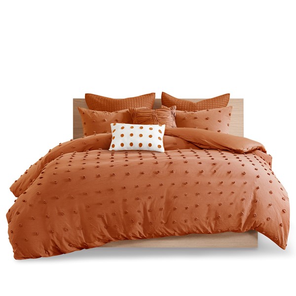 Urban Habitat Brooklyn Cotton Jacquard Duvet Cover Set with Euro Shams and Throw Pillows in Rust, King/Cal King UH12-2499