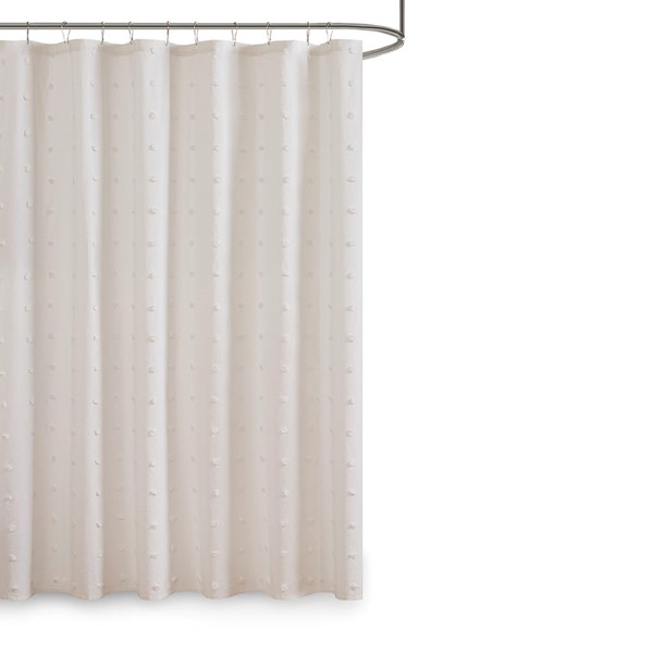 Create a shabby chic look in your bathroom with the Urban Habitat Brooklyn Cotton Yarn Dyed Jacquard Pom Pom Shower Curtain. This 100% cotton shower curtain features a soft ivory hue with an all-over pom pom tuft design that creates a beautiful texture and fresh tonal pattern. Measuring 70×72 inches, the shabby chic shower curtain softens your bathroom decor and is machine washable for easy care. This shower curtain is also OEKO-TEX certified, meaning it does not contain any harmful substances or chemicals, ensuring quality comfort and wellness. Coordinate with bedding collections, window treatments, and decorative pillows that are sold separately to complete your decor.