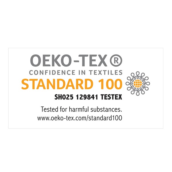 * Oeko-Tex Certified, includes no harmful substances or chemicals (SH025 129841)