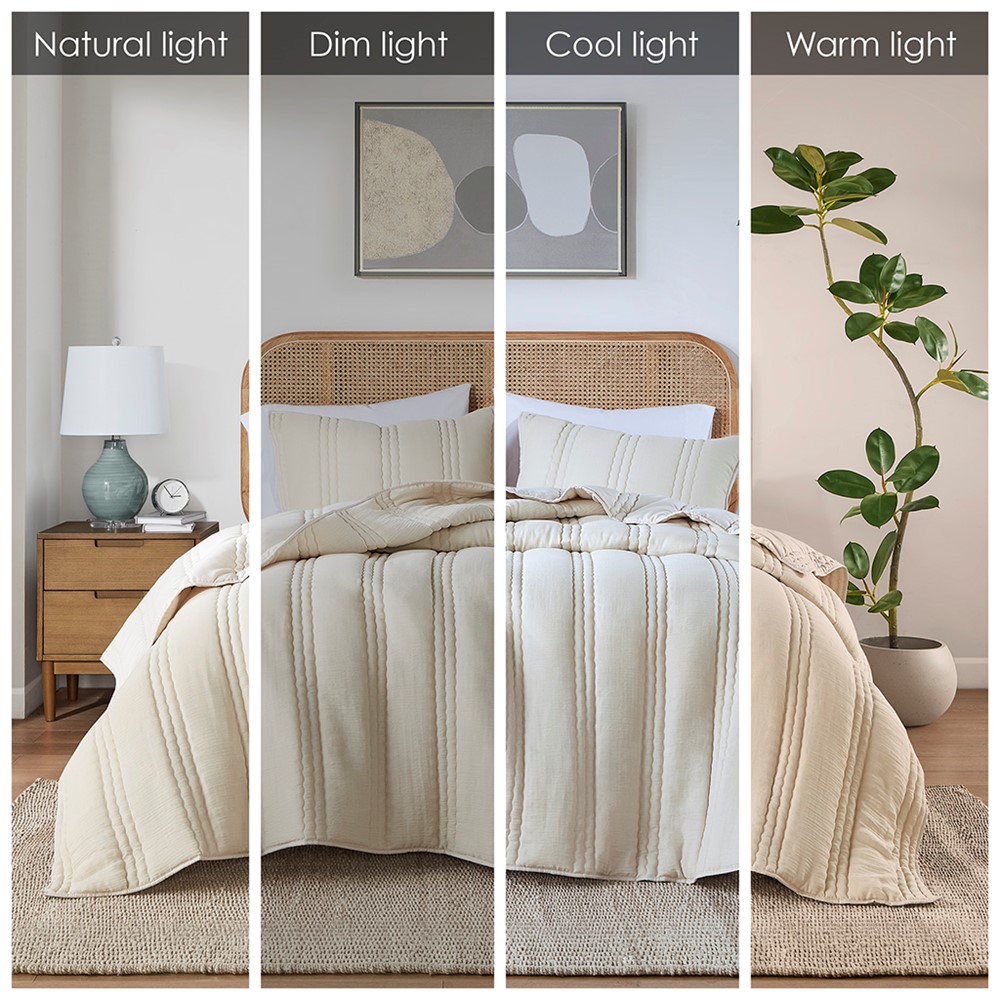 Good quilt set for updating bedroom decor with its light texture that feels just right for the changing seasons. Not too heavy, making it easy to layer or use on its own, though it could benefit from a slightly more nice color option.