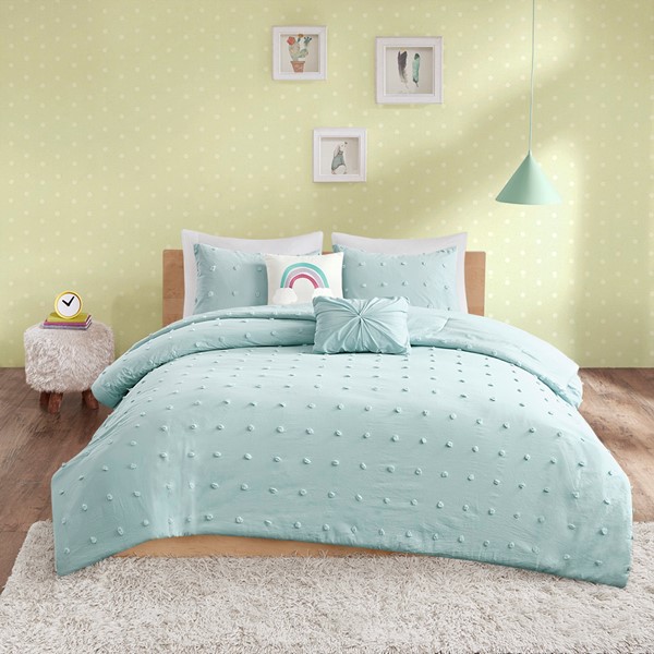 Urban Habitat Kids Callie Cotton Jacquard Pom Pom Comforter Set in Aqua, Twin UHK10-0130