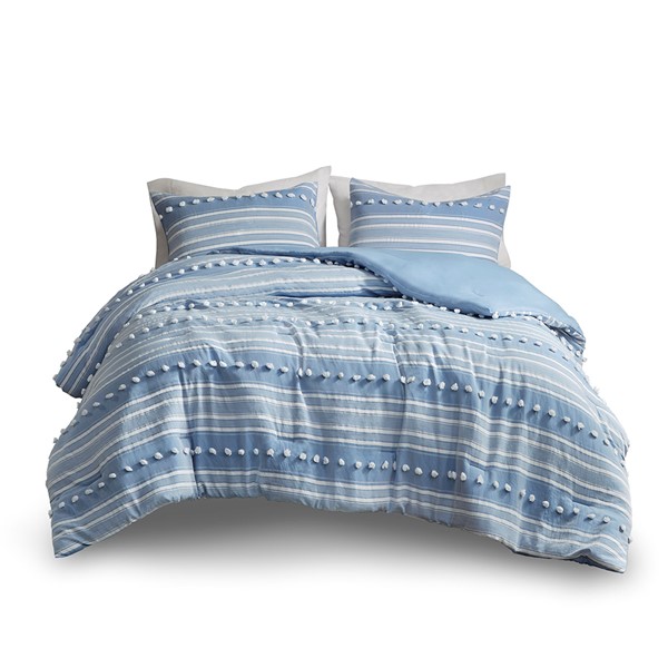 Urban Habitat Rowan Striped Clipped Jacquard Comforter Set in Blue, King/Cal King UH10-2482