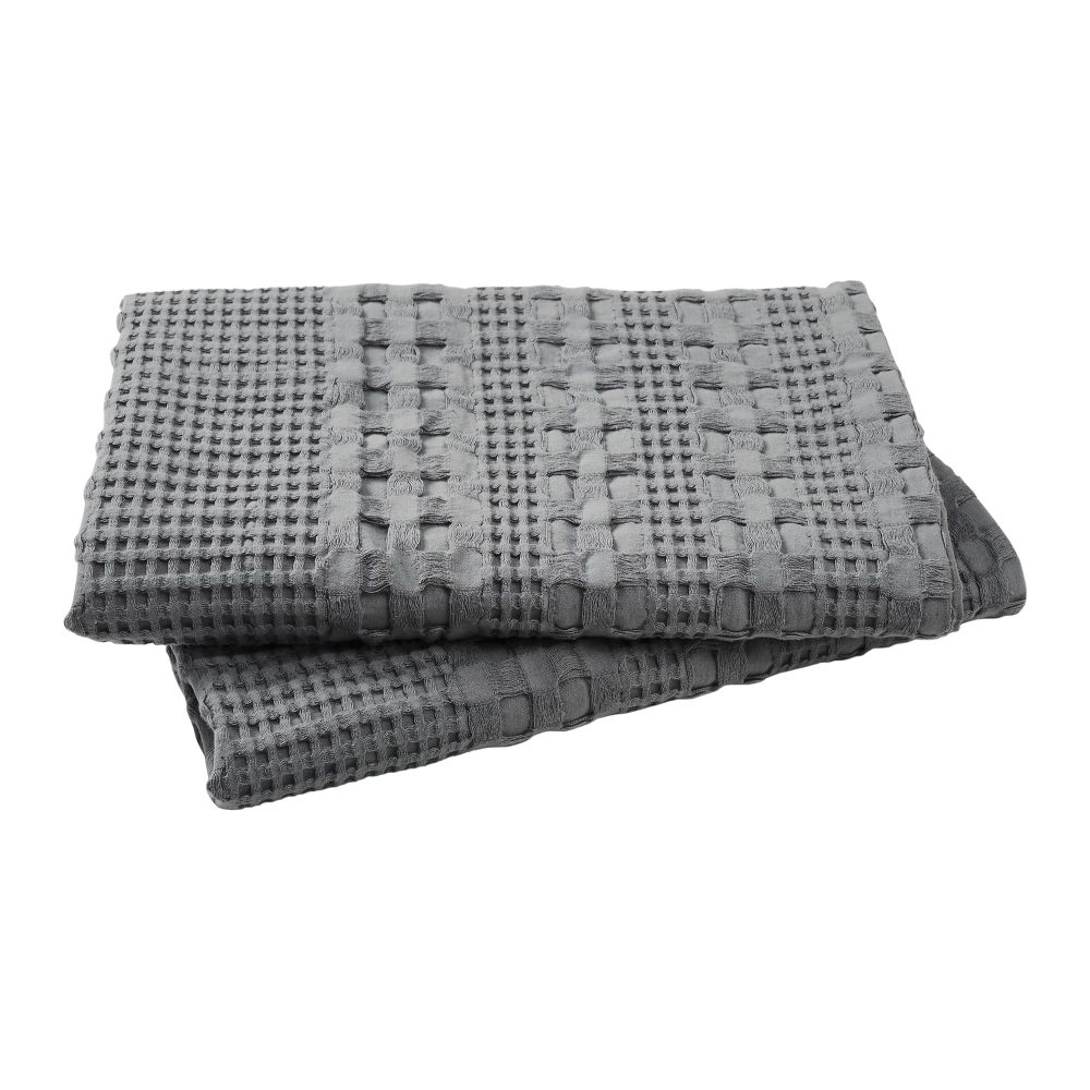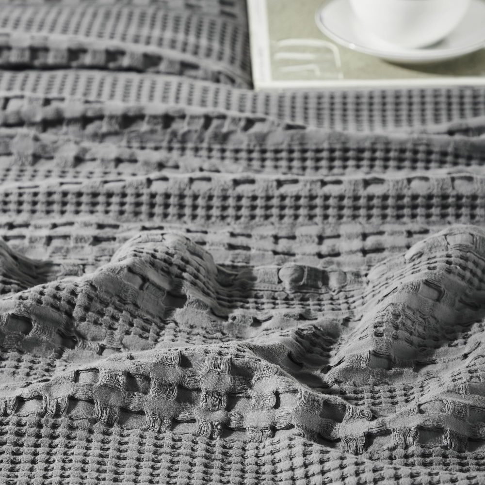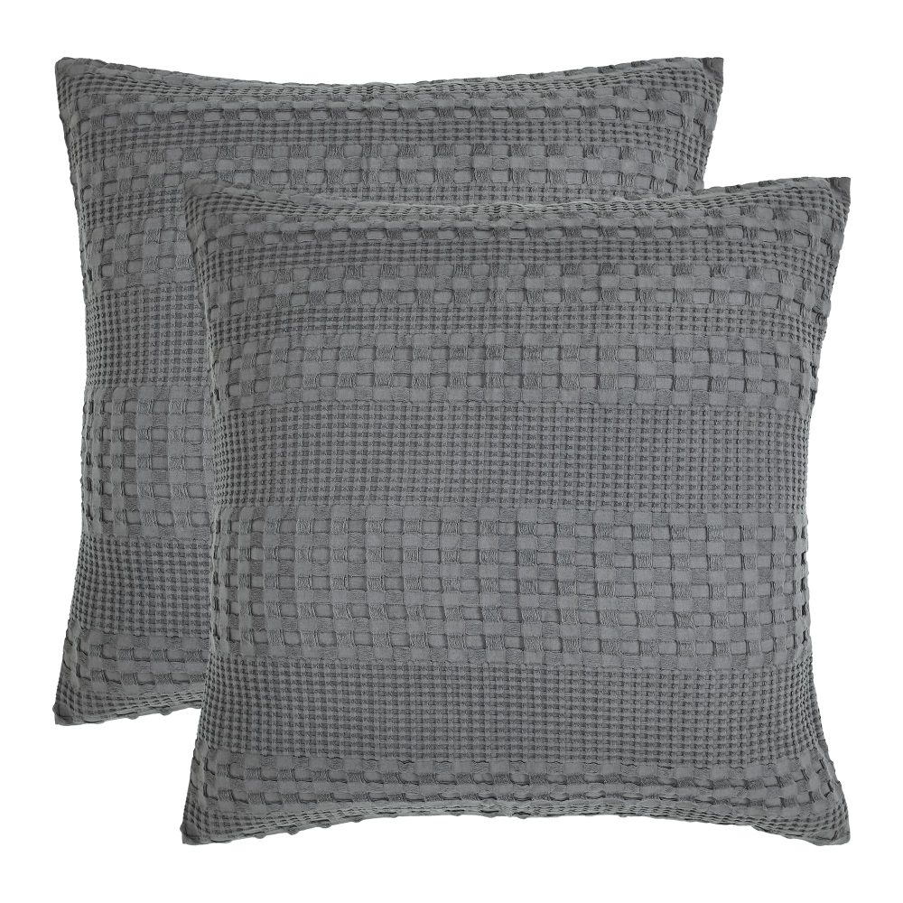 VHC Brands Dark Gray Waffle Weave Euro Shams (Set of 2, 26×26) – Farmhouse Boho Decorative Pillow Covers for Bedroom Decor