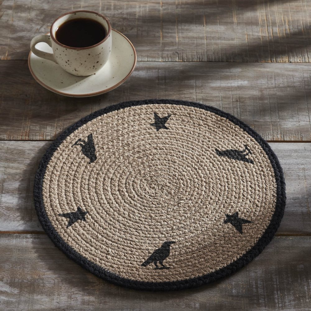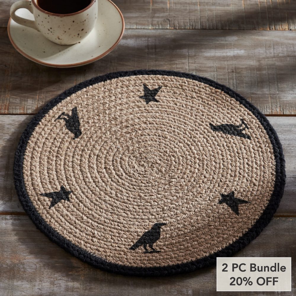 - Sku – 85537 – VHC Brands Raven Harvest Stencil 12 Inch Round Cotton Quilted Farmhouse Trivet Hot Pad for Rustic Fall Kitchen Decor (2 Packages)