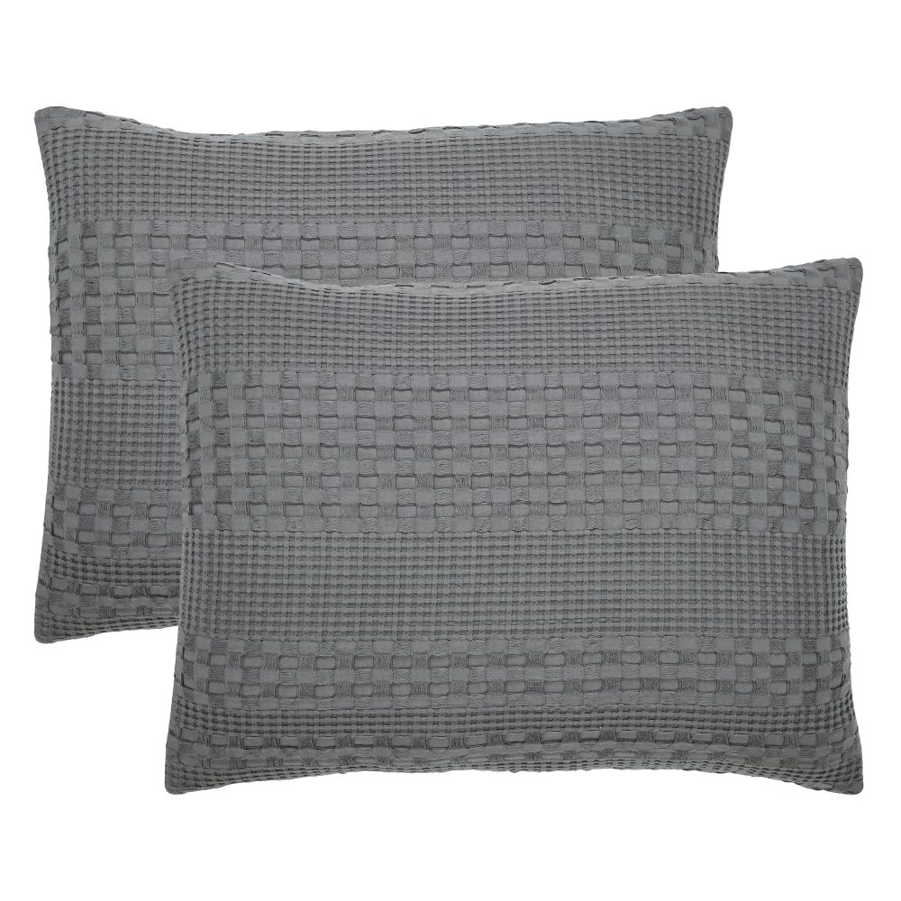 Transform your sanctuary into a cozy haven with the VHC Brands Waffle Weave Dark Gray Standard Sham Set. Each 20x26 inch sham, woven from 100% premium cotton, cradles your pillows in a soft, breathable embrace. Feel the intricate waffle weave, a delightful texture under your fingertips, adding a sophisticated charm that whispers tales of rustic farmhouse comfort and whimsical cottage core dreams. These shams, pre-washed for an immediate lived-in softness, invite you to sink into a bed adorned with timeless elegance. The deep, earthy hue of these dark gray shams anchors your space with a grounded calm, effortlessly blending with sun-kissed wooden beams or a bouquet of wildflowers. Their versatile solid design creates a cohesive and inviting retreat, transforming your bedroom into a comforting escape. With easy machine-washable care, these practical yet elegant pillow covers promise lasting beauty and warmth, elevating your home with functional art that soothes the senses and nurtures the soul.
