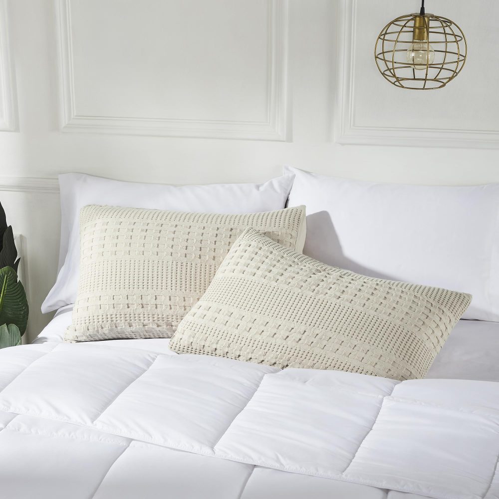 - ELEGANT DESIGN & DURABILITY: These 20×26 inch standard shams are crafted from 100% high-quality, pre-washed cotton, featuring a unique and intricate waffle weave pattern for a sophisticated texture that enhances any farmhouse or cottage-inspired bedroom.