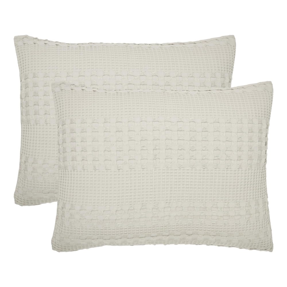 Drift into a dream-like state with the VHC Brands Waffle Weave Natural Standard Sham Set, where rustic charm meets elegant comfort. Each 20x26 inch sham, crafted from 100% pure, high-quality cotton, invites a touch of heirloom beauty into your sanctuary. Feel the intricate, unique waffle weave, a soft embrace against your skin, breathing life into your farmhouse or cottage-inspired haven. These pre-washed shams offer a truly lived-in comfort from the very first touch, promising a peaceful night's rest and a serene morning wake-up. Adorn your bed with the timeless allure of natural hues, as these decorative pillow covers effortlessly blend with sun-drenched wood tones and fragrant floral arrangements. The versatile, solid natural color drapes your pillows in understated sophistication, transforming your space into a harmonious retreat. Designed for both lasting beauty and ease, simply machine wash these enduring shams to keep them feeling fresh and looking inviting, ready to cradle you in gentle luxury night after night.