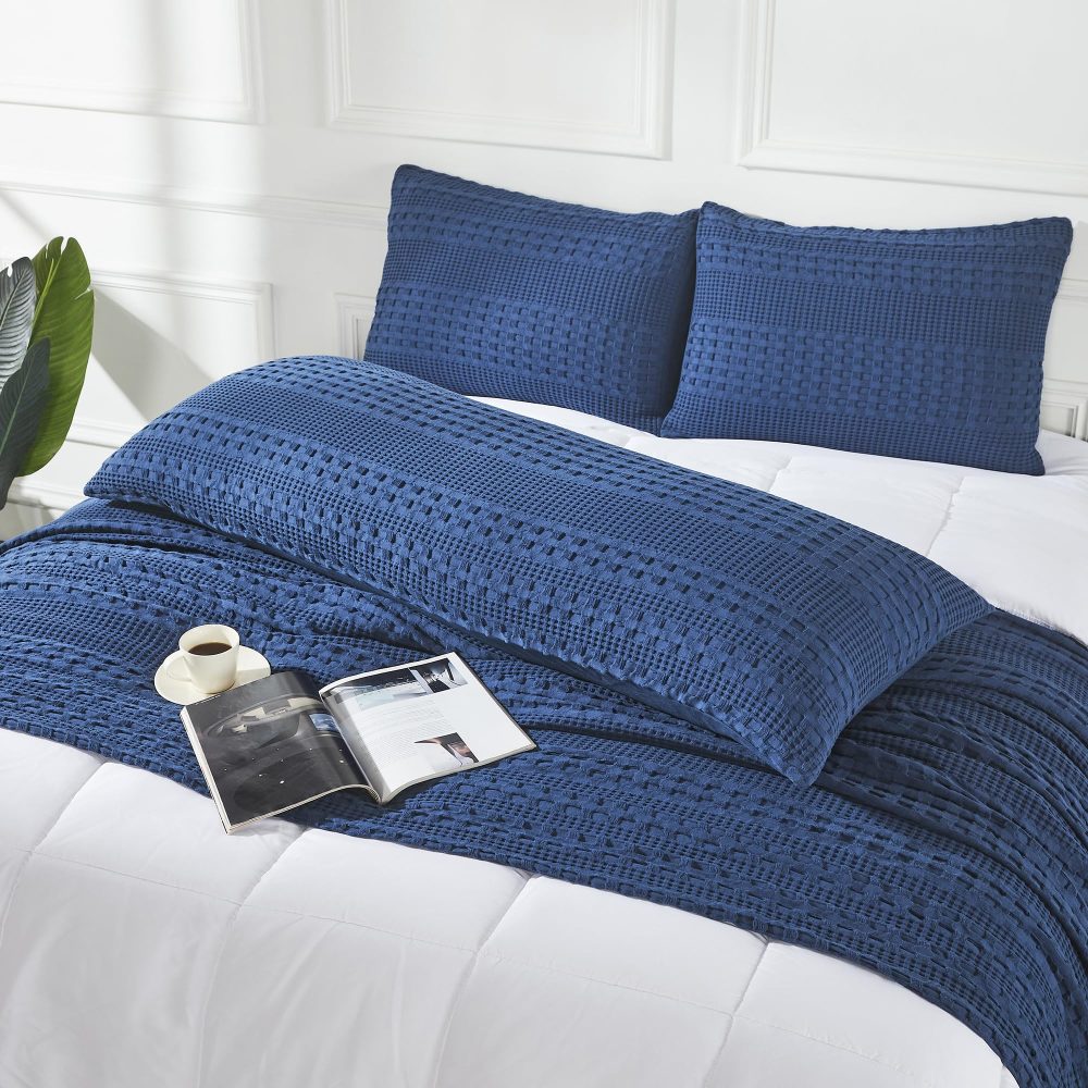 - FARMHOUSE & COTTAGE ESSENCE: This navy blue body pillow cover brings a comforting, lived-in feel to your bedroom, seamlessly blending rustic charm with sophisticated style through its waffle weave texture and timeless hue.