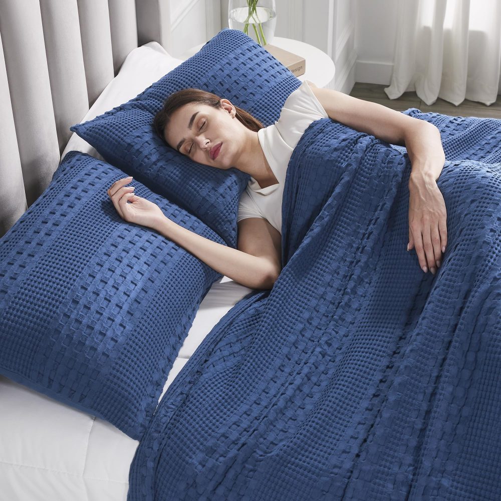 • COTTAGE COMFORT: Meticulously crafted from 100% premium, pre-washed cotton with an intricate waffle weave, these navy blue queen shams offer a soft, breathable embrace for a tranquil, timeless farmhouse sanctuary.