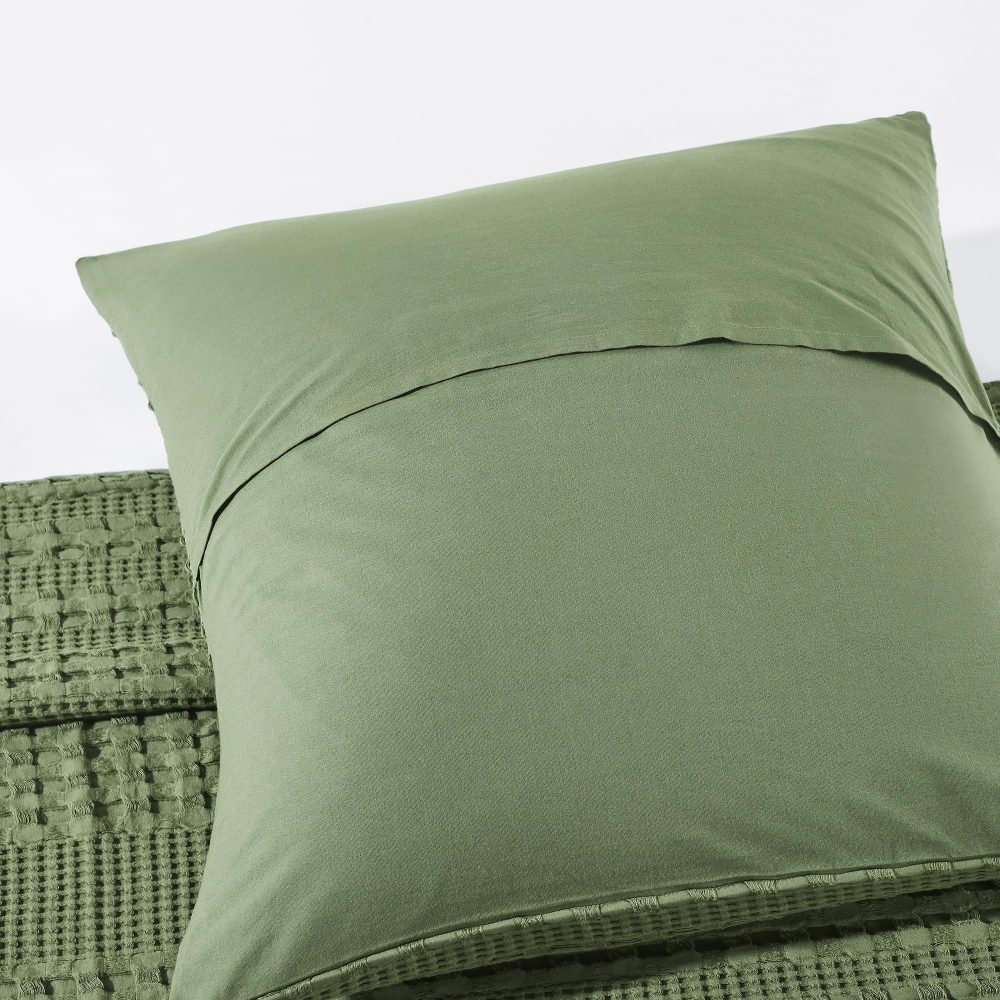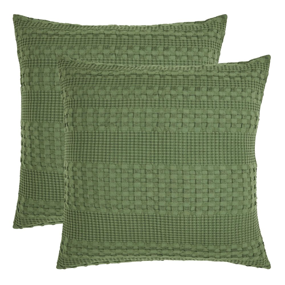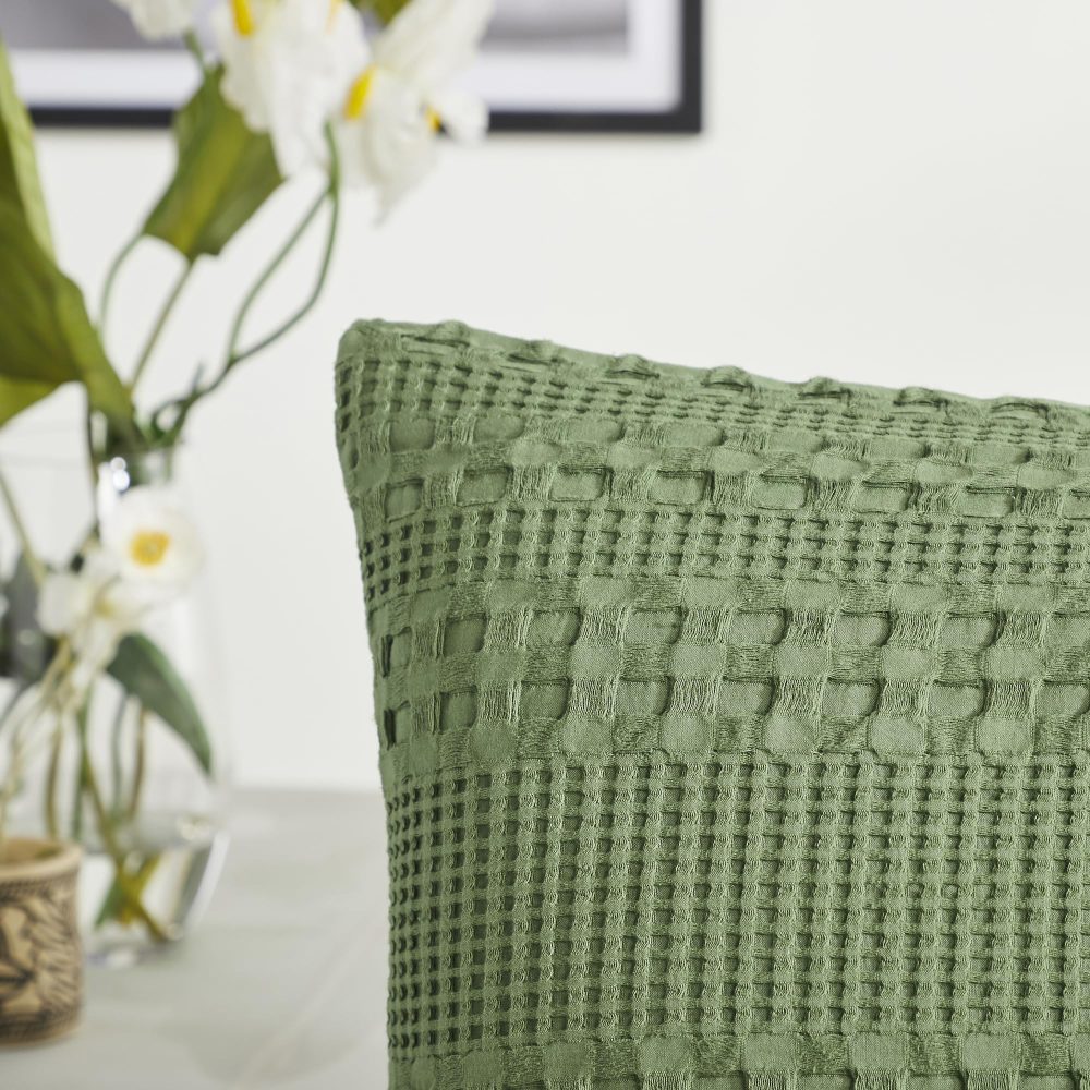 - EARTHY ELEGANCE: Infuse your space with tranquil farmhouse charm and tactile luxury through these premium cotton, pre-washed pillow covers, featuring an intricate waffle weave and a soothing olive green hue.