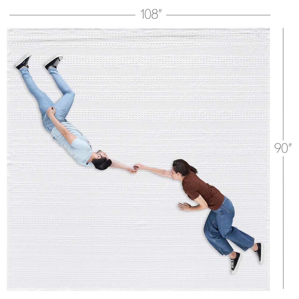 • EXPERTLY CRAFTED DESIGN: This 90×108 inch King Blanket is made from 100% pure, high-quality cotton, featuring an intricate waffle weave for a soft, breathable, and lightweight feel, perfect for year-round comfort and a sophisticated textural accent.