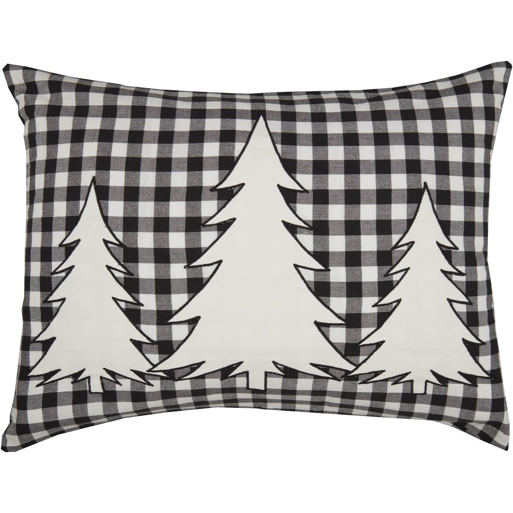 The Vintage Check Collection is a delightful way to add a sweet and stylish touch to your cottage or farmhouse bedroom this winter. The sham features classic gingham in a timeless combination of crisp black and white squares and the repeating pattern brings energy with dynamic design in a classic geometric style. The sham has a straight edge that adds a crisp, tailored touch to your bedding ensemble. Three white appliqued tree silhouettes are placed symmetrically on the pillow cover and black embroidery completes the look with a crisp outline. Vintage Check is 100% high-quality cotton, made to weather the wear and tear of everyday modern lifestyles. The sham reverses to the same material and has 3 light natural wooden buttons to keep your pillow secure. (One extra is sewn inside, just in case you lose one)