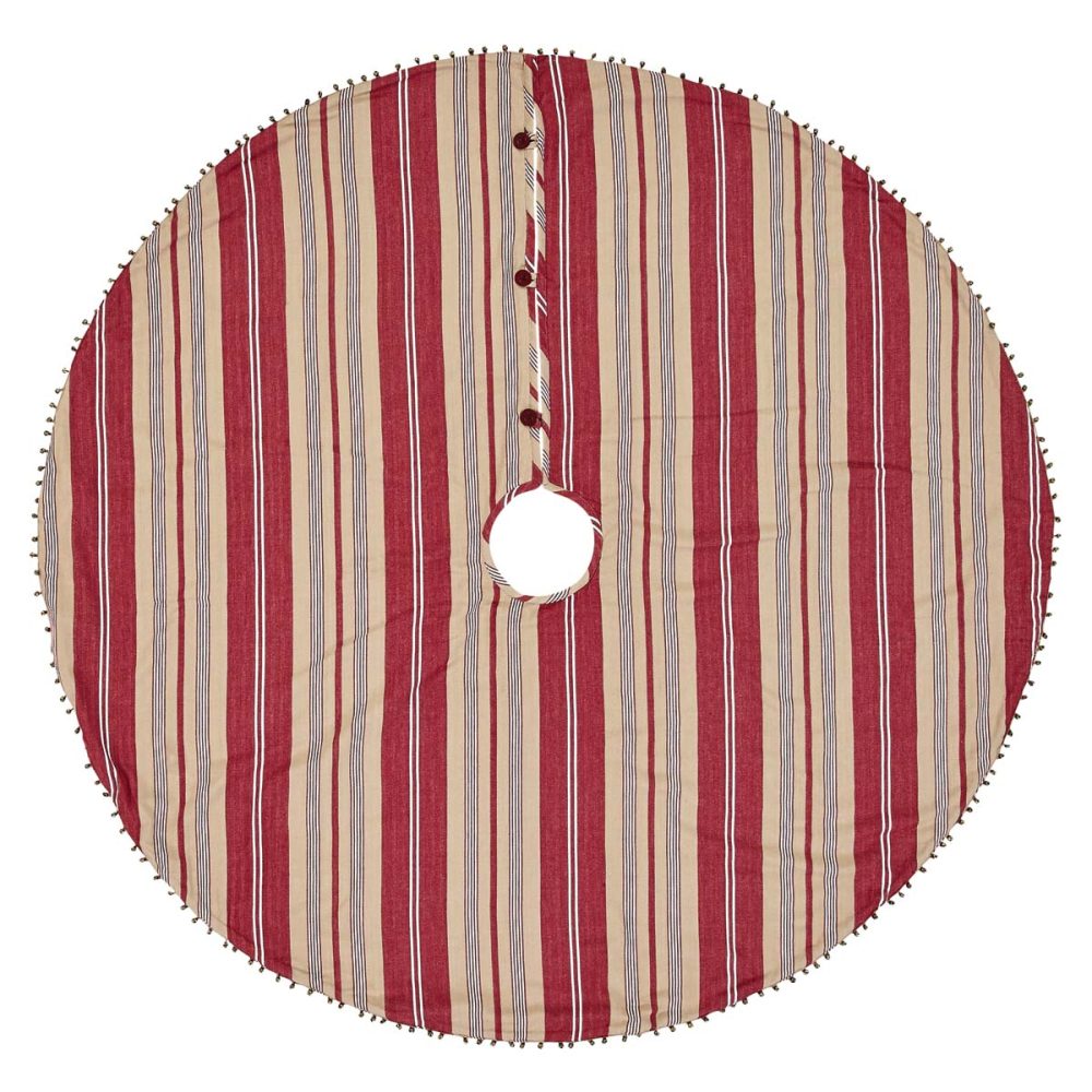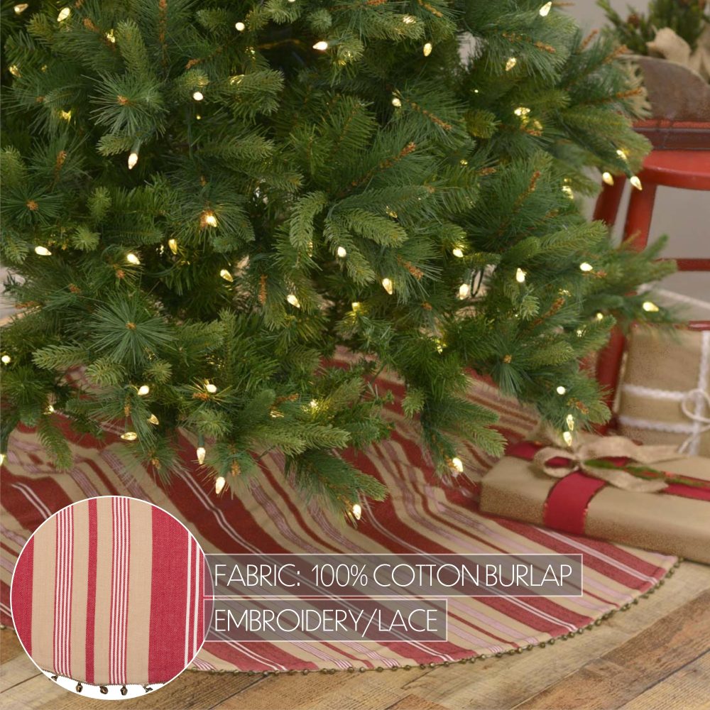 Our team really put the holiday cheer in this Vintage Striped 48" Christmas Standard Tree Skirt. Featuring various candy apple red, khaki, and snow white stripes, this small tree collar is just festive enough while keeping that down-home farmhouse feel. Simply flip it over for a snow white reversibility for years of holiday variety.
