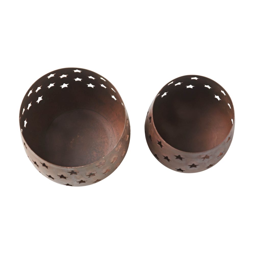 Enhance the rustic charm of your home with the VHC Brands Metal Votive Candle Holder Stars in Antique Rust, offered in a convenient set of two. These rustic candle holders feature metal cups adorned with intricately cutout stars, adding a touch of celestial elegance to your indoor decor. Available in two sizes, 4.13x5.3x5.3 inches and 3.54x4.33x4.33 inches, they offer versatility in styling and placement, making them perfect for elevating the ambiance of your kitchen dining table, shelves, or mantels. Crafted from durable metal, these candle holders boast an antique rust brown finish that exudes primitive allure and timeless appeal. Their distressed appearance adds character and warmth to any space, evoking a cozy atmosphere reminiscent of simpler times. Whether placed in the dining room, entryway, or living room, these candle holders infuse your home with rustic charm, effortlessly complementing a variety of decor styles, from farmhouse to vintage-inspired themes. While enjoying the soft glow emitted by these candle holders, it's essential to prioritize safety. Remember to exercise caution and avoid touching or moving the holders while warm or when candles are lit. Always allow the candle holders to cool down before handling, and ensure they are kept out of reach of children. Additionally, take care to place lit candles away from flammable objects, ensuring a secure and inviting environment in your rustic-themed spaces throughout your home.