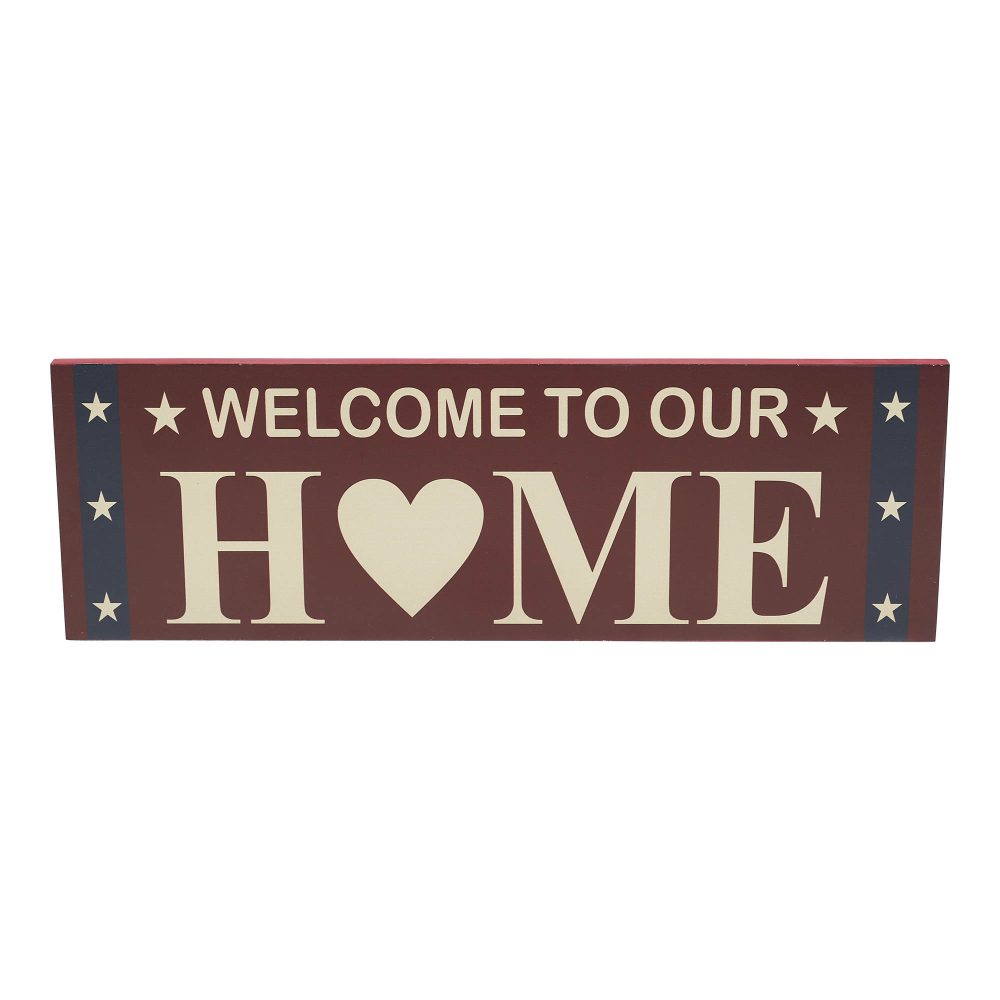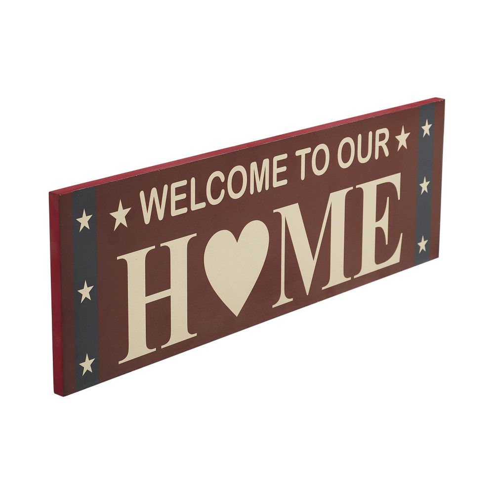• Patriotic Welcome Design: Features the welcoming phrase “Welcome To Our Home” in creme, with a heart replacing the letter “O” in “home,” accented by star trim for a festive touch.