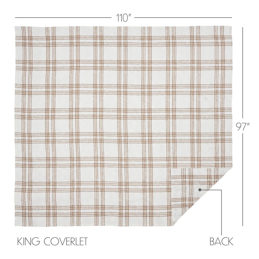 Light in weight, but not in crisp, modern country farmhouse style. The Wheat Plaid King Coverlet measures 97x110 and adds a comfortable layer for warm seasons and style and extra warmth for cooler months. The reversible design of this 100 percent cotton blanket features a soft and comfortable feel with a textured, woven fabric in a minimalist, large-scale plaid pattern. A white base brightens the look of your room while golden tan stripes add delightful farmhouse style to your decor. Coordinates with shams, pillows, panels, and more from the Wheat Plaid Collection by VHC for a sophisticated gold and white look and classic country charm or add to your seasonal decor for charming fall, harvest season style.