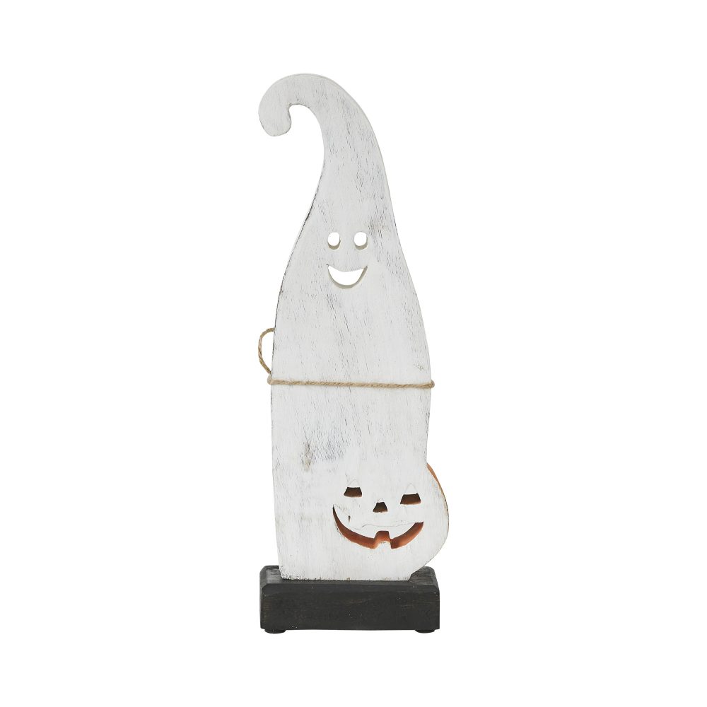 - EXQUISITE DESIGN & DURABLE CONSTRUCTION: Measuring 4.25×12.5 inches, this heartwarming tabletop figurine is crafted from durable tropical wood with an authentic distressed finish, featuring a softly whitewashed ghost with an inviting cutout smile and a happy, carved pumpkin glowing in vibrant pumpkin orange, charmingly complemented by a rustic jute twine ribbon and warm orange wood beads to create a timeless, festive farmhouse accent.