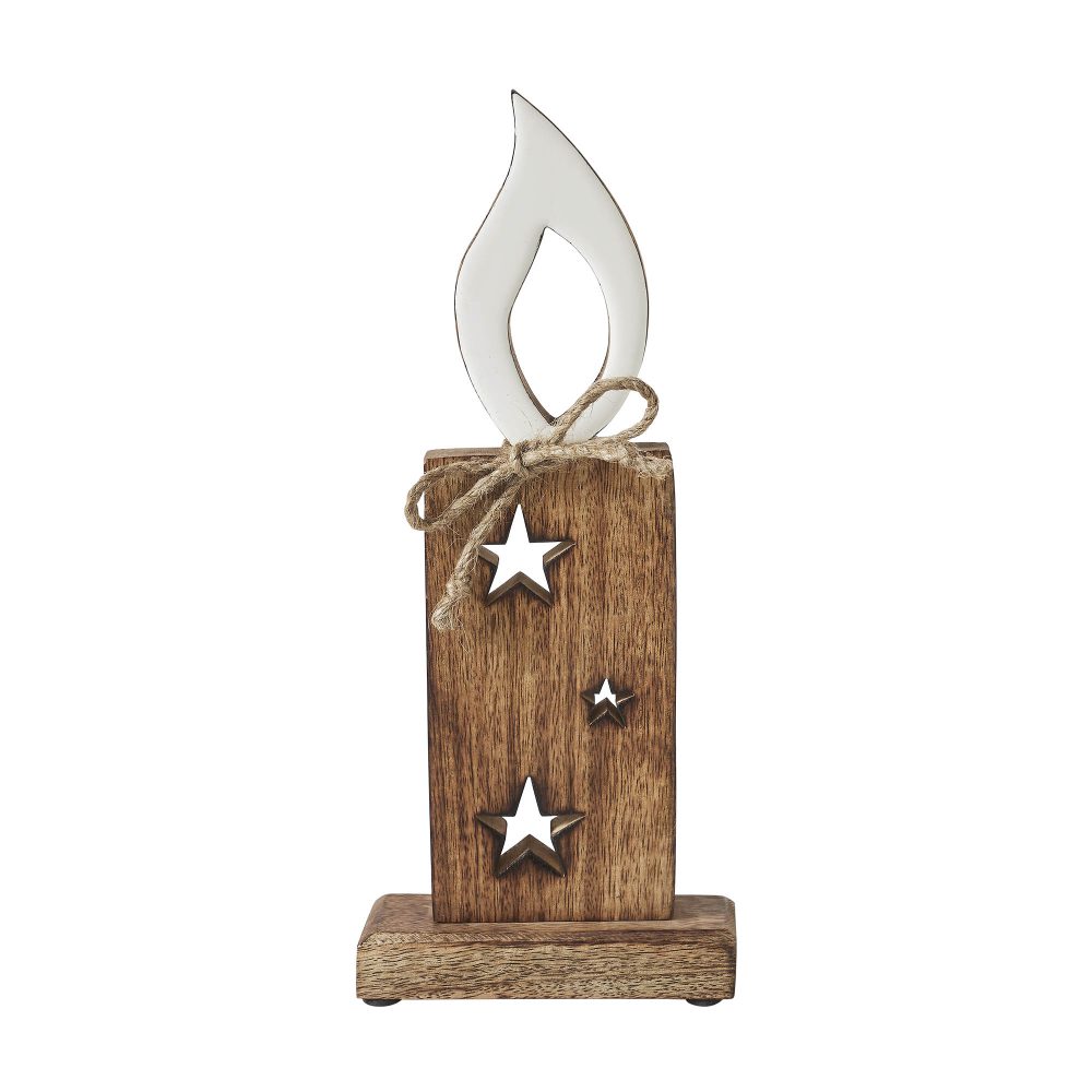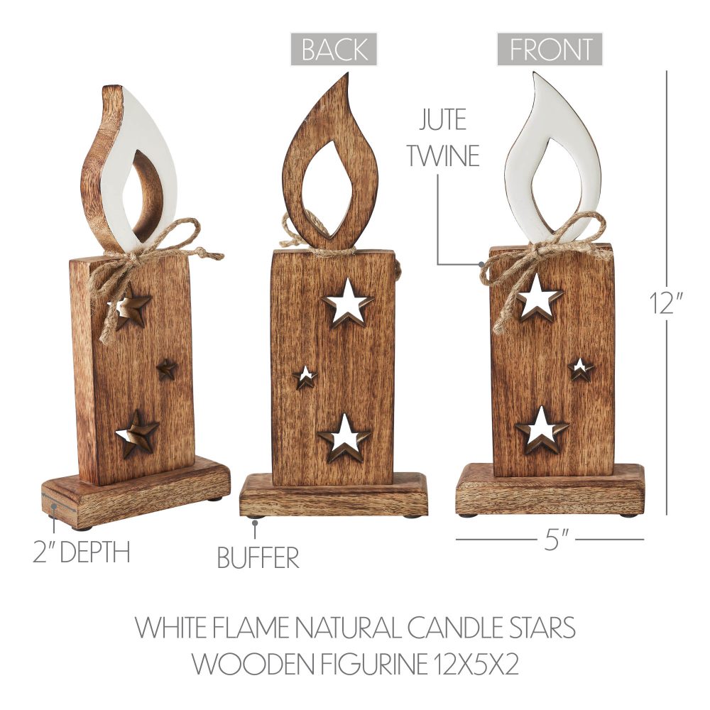 - Introducing the charming VHC Brands Tropical Wood White Flame Natural Candle w/ Stars Wooden Figurine, a delightful addition to your home decor, crafted from tropical wood for enduring beauty.