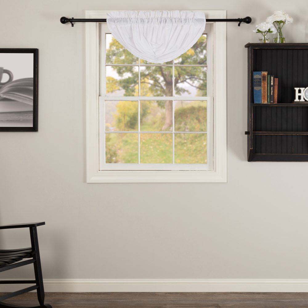 The White Ruffled Sheer Balloon Valance brings an updated sensibility to farmhouse decor. Expertly crafted of dense and lightweight cambric fabric for a pleasing drape. Farmhouse ruffles finish the look for a touch of rustic romance.