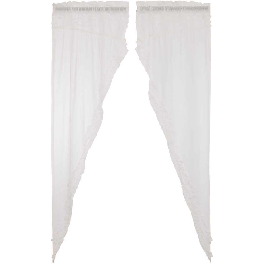 The White Ruffled Sheer Petticoat Prairie Long Panel Set creates a romantic cottage feel for your home. Featuring lightweight cambric and detailed ruched ruffles reminiscent of a classic cotton petticoat, these curtains are a versatile choice for accenting kitchens, laundry rooms, and more. The gracefully angled drapes perfectly frame windows providing a bit of feminine polish for your home. Our prairie panels come with built in drawstrings to adjust each panel to meet your style needs, along with a curtain rod pocket for easy hanging.